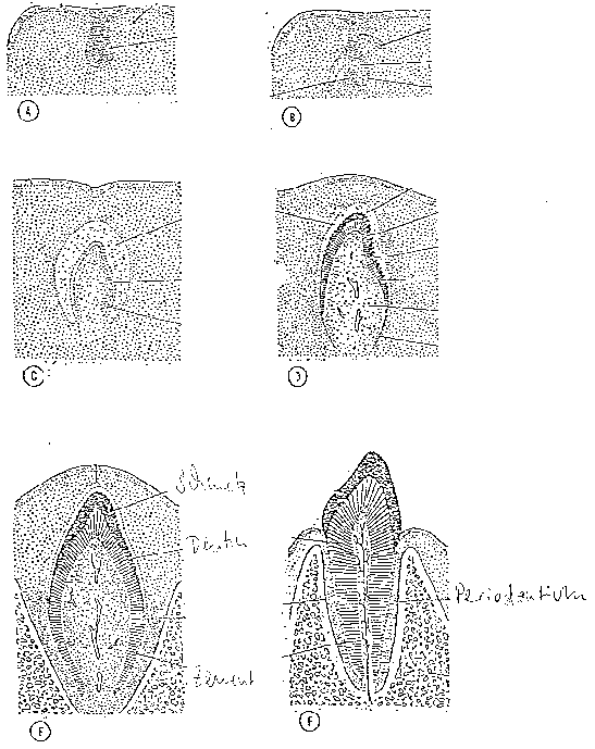 | Embryoblätter zur Zahnentwicklung (zum beschriften) und schon beschriftet |